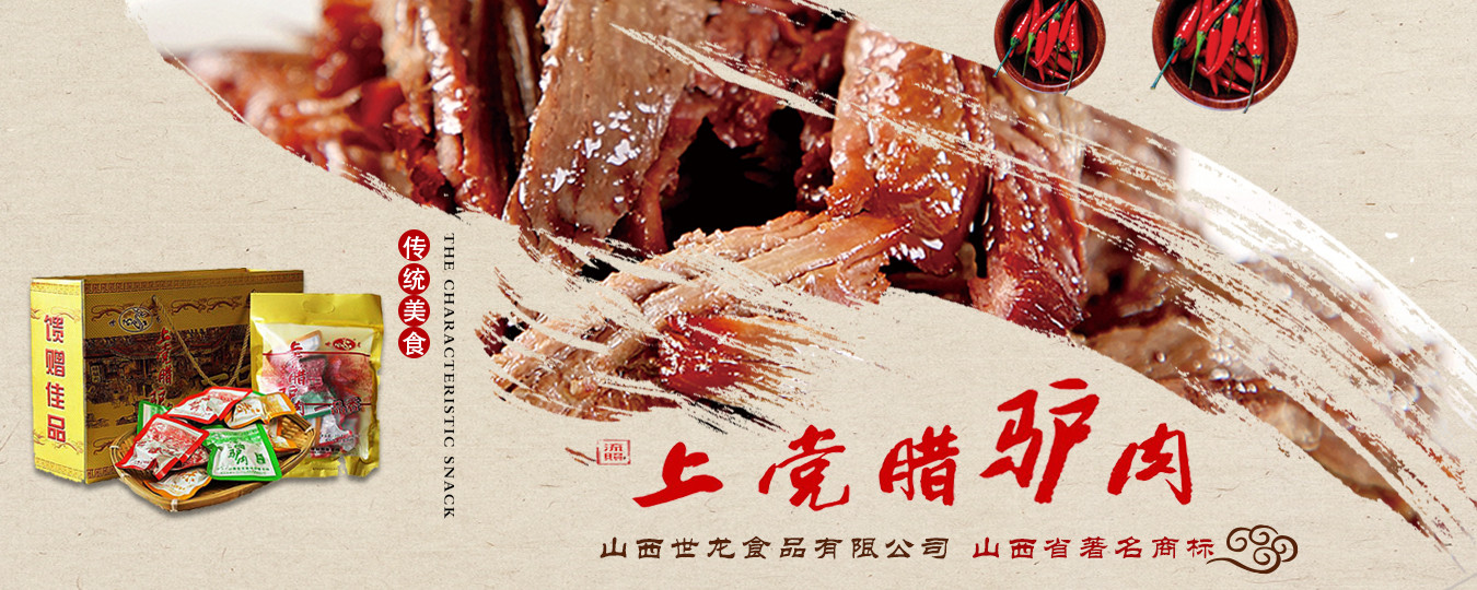 山西世龍食品有限公司是以“世龍”牌上黨臘驢肉系列產(chǎn)品為主導,集科研開發(fā)、良種繁育、基地建設、生產(chǎn)加工、市場營銷于一體的農(nóng)業(yè)產(chǎn)業(yè)化國家重點龍頭企業(yè)、全國農(nóng)業(yè)標準化示范區(qū)、全國食品行業(yè)優(yōu)秀龍頭企業(yè)、山西省農(nóng)業(yè)產(chǎn)業(yè)化重點龍頭企業(yè)、山西省農(nóng)產(chǎn)品加工“513”工程單位、山西省帶動貧困地區(qū)基地建設重點龍頭企業(yè)、山西省民營畜牧業(yè)示范基地、山西省質(zhì)量信譽AAA級單位、山西省重合同守信用單位、山西省消費者協(xié)會誠信單位、山西省民營科技企業(yè)。